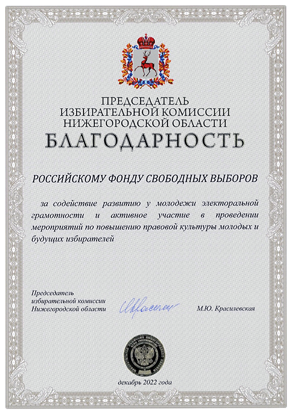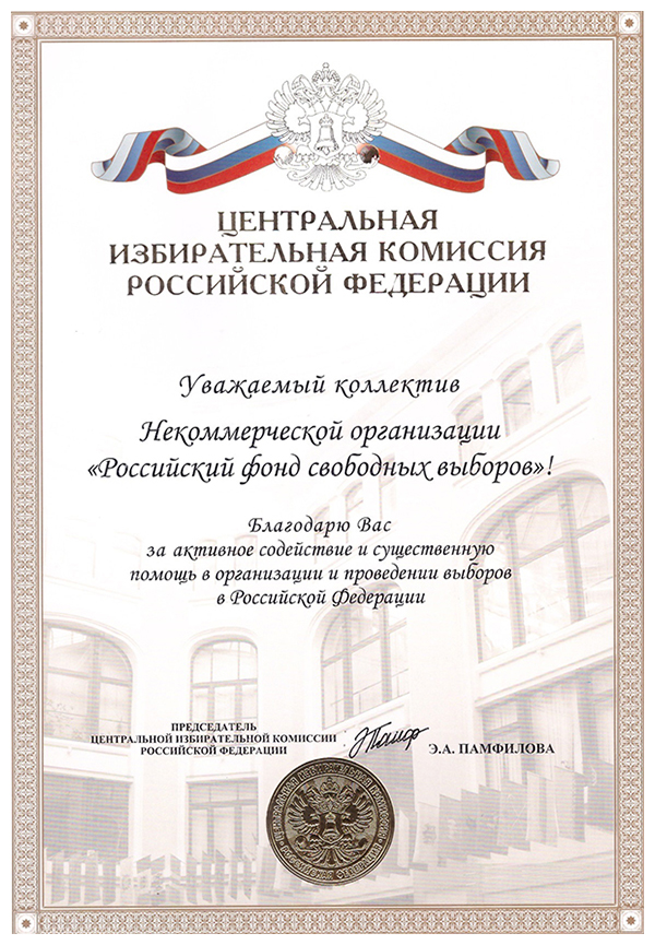 После избрания Эллы Александровны Памфиловой на пост Председателя Центральной избирательной комиссии Российской Федерации сфера деятельности Российского фонда свободных выборов значительно расширилась, он фактически стал важным связующим звеном между организаторами выборов и институтами гражданского общества.