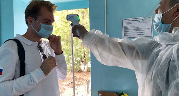 На входе в здание, в которых располагаются УИК, всем участникам голосования измерялась температура, проводилась дезинфекция рук, выдавался санитарный набор, содержащий одноразовую маску, перчатки, индивидуальную ручку и антисептическую салфетку. На участках предусмотрены специальная разметка для соблюдения социальной дистанции, раздельные вход и выход.