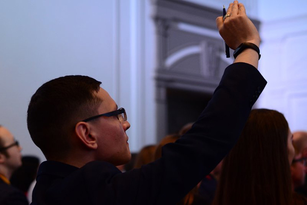 Это «историческое и знаковое событие для членов молодежных избирательных комиссий, сформированных более чем в половине субъектов России», - говорит Артур Багдасарян. «Историю пишем мы», - добавляет Глеб Шабалин.