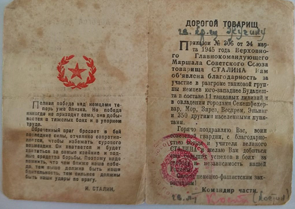 Мой прадед удостоился множества наград, среди которых орден Отечественной Войны II степени, медаль Жукова, медаль «За Победу на Германией в Великой Отечественной войне 1941-1945».