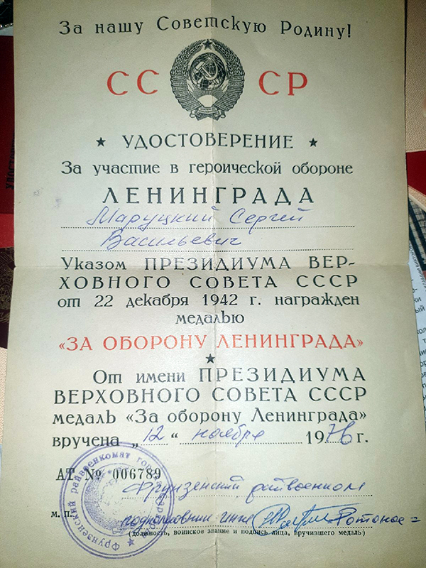 Мария Белоусова об участнике обороны Ленинграда, полковнике Сергее Васильевиче Маруцком