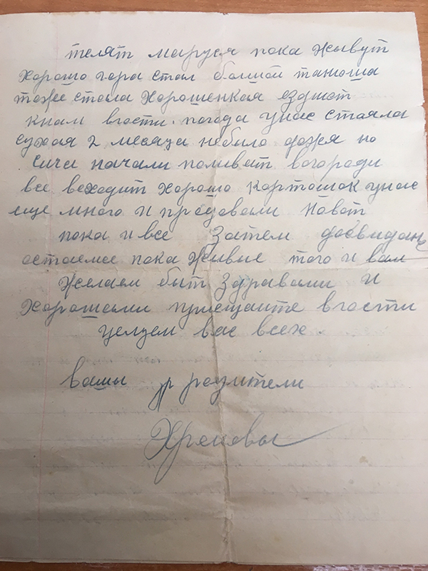 В 1962 году Аким написал письмо моей бабушке Тамаре, ее семье и дочери Аннушке: