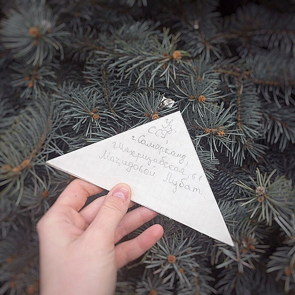 Недавно я собирал документы для поездки в лицей, который находится в городе-герое Волгограде и случайно увидел в документах дедушки письмо-треугольник с надписью: «Узбекская ССР ... Маджидовой Лубат». Я спросил у дедушки: